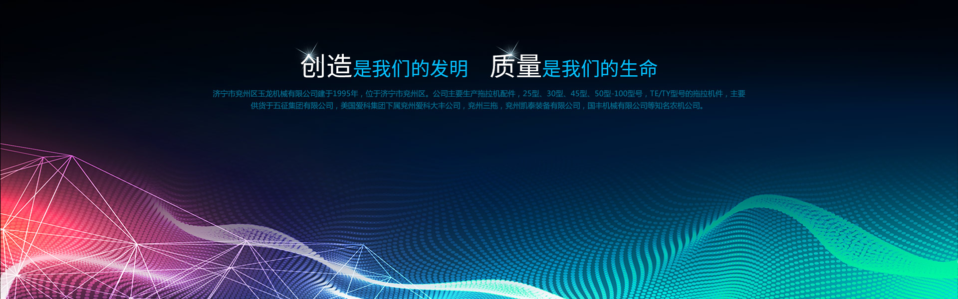 濟寧市兗州區玉龍機械有限公司建于1995年,位于濟寧市兗州區。公司主要生產拖拉機配件、25型、30型、45型、50型-100型號、TE/TY型號的拖拉機件,主要供貨于五征集團有限公司,美國愛科集團下屬兗州愛科大豐公司,五征山拖,兗州凱泰裝備有限公司,國豐機械有限公司等知名農機公司。